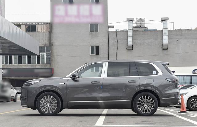再来看车身侧面部分,车身侧面采用1:1.2的车窗车身比,通过CATIA曲面分析形成的黄金折角贯穿式肩线,塑造出豪华车型的威严姿态。传统外拉式门把手设计摒弃了华而不实的隐藏式方案,在极寒环境下仍能保持可靠操作。21英寸星轨多辐轮毂搭配固特异ElectricDrive系列轮胎,不仅视觉效果尊贵,更提供了出色的湿地抓地性能。车顶线条平直舒展,后排隐私玻璃与镀铬饰条的运用,进一步提升了整车的豪华质感。