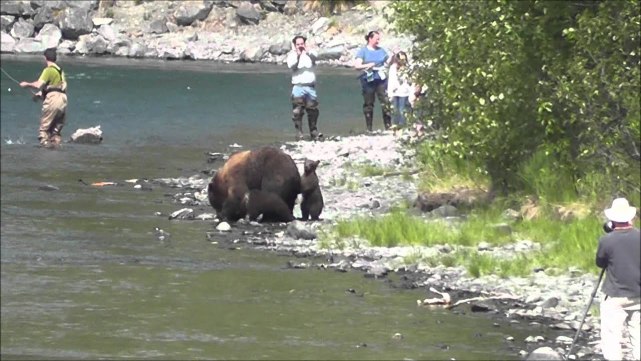 棕熊非常喜欢吃鱼,所以经常可以看到北美和俄罗斯的钓友碰到熊的奇遇,这样的事情几乎每一年都有发生,而且好像从来都是熊离开,人没有事。