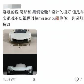 真正的保时捷Mission X官方前脸是竖式四点LED大灯,根本没有图里那条横灯。而下方的小米超跑Vision GT,“十字”大灯是其独立设计语言。