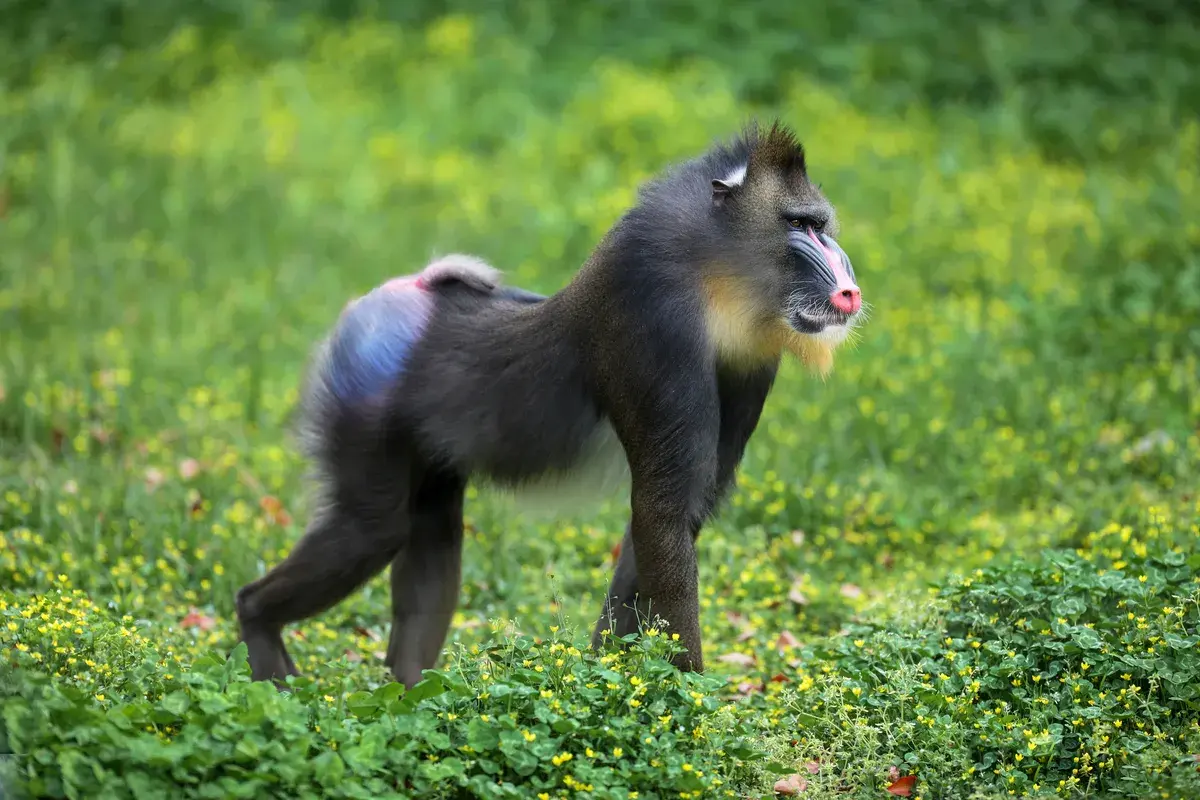 山魈是少数几种拥有鲜艳色彩的哺乳动物之一,但它们的这些色彩只出现在身上毛发稀少或没有毛发的部位。