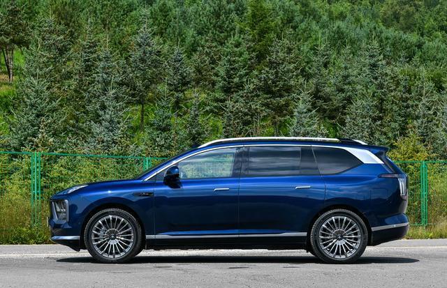 再来看车身侧面部分,车身尺寸为5126MM、1990MM、1750MM,昊铂HL以简约大气的线条贯穿整个侧围,营造出流畅而富有韵律的视觉效果。大尺寸厚壁轮胎与动感十足的轮毂设计,进一步强化了车辆的运动气息。车身侧面设计灵感同样源自游艇,流线型轮廓不仅美观,更有效降低了风阻系数,提升了行驶效率。隐藏式门把手和低风阻轮毂等细节设计,展现了昊铂HL对空气动力学的极致追求,为长途旅行提供了稳定的高速行驶体验。